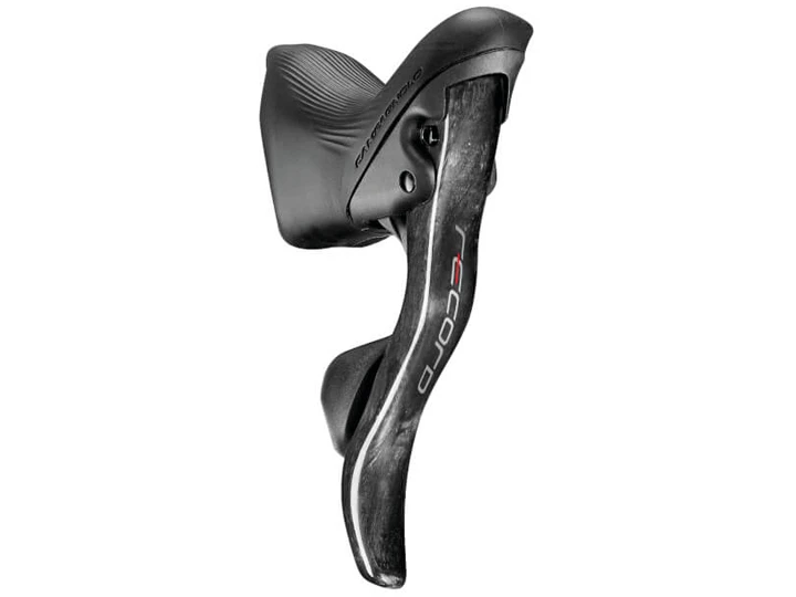 The new carbon unidirectional levers lend the Record Rim Brake controls an air of power, stiffness and reliability.