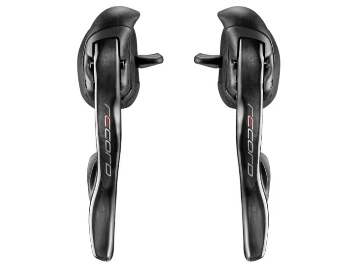 The new mechanical Campagnolo Ergopower Record 12 Speed Shifter Set brake controls are aesthetically pleasing and functional.
