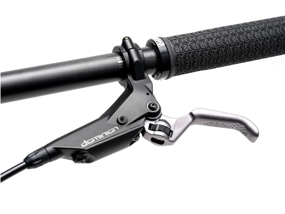 Dominion’s master cylinder is factory tuned for the shortest dead stroke possible and a crisp bite point. The Dominion A4 caliper utilizes four pistons in the most structurally rigid design possible. It features a cold-forged caliper and KingPin structural pad retention bolt that increases stiffness.