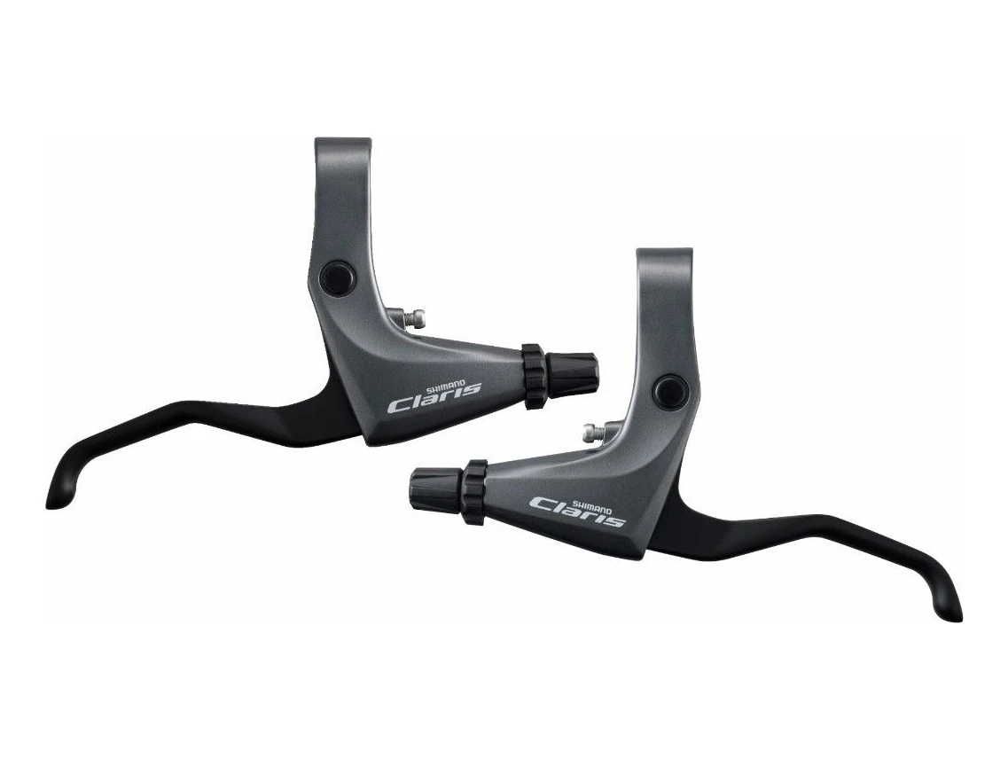 The Shimano Claris R2000 mechanical brake lever set is perfectly suited for flat bar bikes, and is compatible with cantilever, V-Brake, mechanical disc, and Shimano Super SLR caliper brakes.
