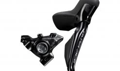 Shimano Dura Ace shift/brake set consisting of the electronic ST-R9270 STI lever for lightning-fast shifting and the hydraulic BR-R9270 disc brake caliper for superbly controllable and quiet braking. Trouble-free maintenance is provided by the proven One Way Bleeding concept and the Easy Hose Joint System which simplifies brake hose exchanges.