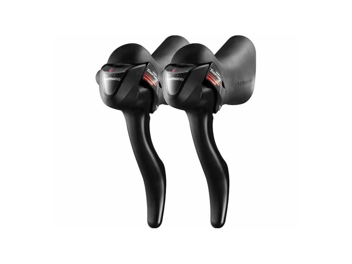 The ST-A070 shifter set is designed for 2×7 speed drivetrains and features Shimano’s STI Dual Control Lever technology to incorporate gear shifting and braking into the one unit.